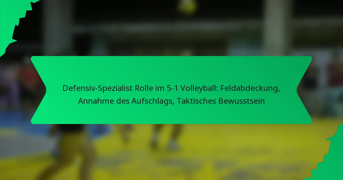 Der defensive Spezialist in einem 5-1 Volleyballsystem spielt eine entscheidende Rolle bei der Stärkung der Verteidigung des Teams, indem er sich auf den Empfang von Aufschlägen und die Abdeckung des Spielfelds konzentriert. Diese Position erfordert ein starkes taktisches Bewusstsein und effektive Kommunikation, um Spielzüge vorherzusehen und eine nahtlose Koordination mit den Teamkollegen sicherzustellen. Durch das Beherrschen der Spielfeldpositionierung und das Verständnis von Aufschlagmustern legt der defensive Spezialist das Fundament für erfolgreiche offensive Übergänge.